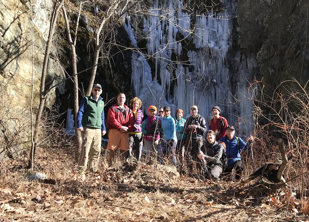 An adventurous crew of ten hikers joined hike leader Jeff Monroe on a beautiful January Saturday to journey to an old copper mine in the National Park. Included in the group were PATC veterans Marian Styles, Marie Moss, Pete and Bev Fink, Dave Borszich, John Brandt, and Michael Seth. Also joining us for their second PATC hike were Gaby Novoa and Johanna Song, along with newcomer Jocelyn Prostko.